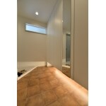 バスルームと色味を合わせ、 LEDの照明でスペース全体を広々とした空間を御提案させて頂きました。