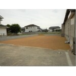 土地の境界にブロックを積みフェンスを設置後、雑草を処理し、表土を削り、真砂土を入れました。