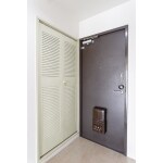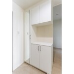 玄関を広げるため、隣の部屋との間の壁を動かして間取りの変更を行いました。あわせて、天井までの高さの玄関収納を設計して、姿見鏡が設置できるトールキャビネットもプラン。溢れていた靴もすべて収納でき、広くなった玄関で靴の履き替えも気持ちよく行えるうようになりました。玄関収納の扉は漆喰のようなホワイトカラーです。玄関横の扉も塗装をして、綺麗に仕上げました。