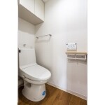 洗面所の隣にあるトイレへの入り口が開き戸だったため、これを引き戸に改善。スムーズな開閉と移動が実現しました。また段差もなくしたバリアフリー仕様に。設備そのものはシンプルでリーズナブルなタイプに。紙巻器はカウンター仕様で、手をかけて立ち上がることもできます。