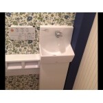 タンク式の手洗いはどうしてもいやだという事でしたので、手洗い器の設置も含め検討を重ねました。限られたスペースでもあり TOTOのワンデーリモデルカウンタータイプに決まりました。 (既存の給排水管をそのまま利用できるので、手洗い器の給排水工事なしでリモデルが出来ます)