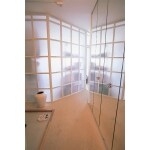費用を抑えるポイントとして、壊れていないキッチンは扉面をシートで覆い、新しい設備のように一新。子供二人と夫婦の寝室3部屋は最小限にしてリビングを広くとりました。個室部分は間仕切枠をしっかり造り、壁になる部分は軽量安価な材料、プラダンに。取り外し、交換も楽でいたずら書きもOK。半透明のパーテーションはお互いの気配がわかって安心できます。お子様が小さい期間と割り切ってのプランは、明るく使いやすい、家族にフィットした住まいとなりました。
