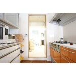 (旧株式会社ハウスドゥでの事例です。)キッチンの横にはニッチを設け、新聞や雑誌、小物を飾れるスペースに。 キッチン横の扉からは洗面、浴室のスペースへとつながっており、家事動線を確保できる間取りをご提案。