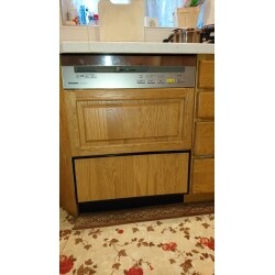 食洗機はパナソニックの商品で後継機種が出ておりましたので、機械はパナソニック製をご提案し、扉材はアメリカのDeWilsより取り寄せました。