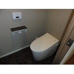 爽やかな柄のアクセントクロスで清潔感のあるトイレになりました