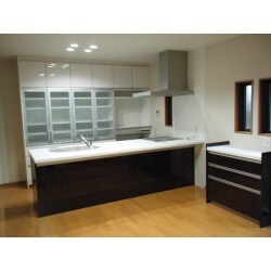 キッチンのレイアウトをL型から対面型に変更しました。 収納もたっぷりと設計し、使いやすいキッチンになりました。