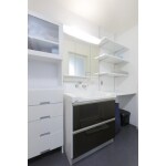 お母さまのお部屋から繋がる洗面スペース。 収納も豊富でご家族5人分の物もスッキリ収納できます。