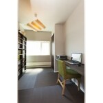 元和室を2分割し、リビング側に書斎を設計。 PCデスクにもなるカウンターを造作。床は畳風のフロアタイルです。