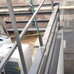 3階建ての屋上は陸屋根になっており、そこに鉄骨を組んで波板を取り付けています。 鉄骨部はサビや腐食が激しく、外壁の金属サイディングもチョーキングが出る程に劣化している状態でした。 鉄骨の補強・補修をしっかりとし、エポキシ系のサビ止めを塗布してからウレタン塗料で塗装。