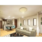 広々としたLDKになりました。キッチンの扉やカップボード類もドアや家具の色と同じような木目に揃えました。