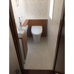 - キャビネット付きトイレで配線などを収納