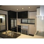 ヴィンテージテイストに似合う紺色のシステムキッチン
