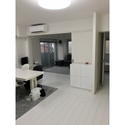 LD側の押入れと北側洋室との壁を無くして引戸に変更。三部屋を一続きの広い部屋に。 引戸・床の色を白にして、統一感が生まれました。