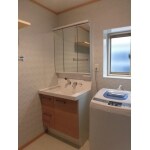 以前のものより洗面器が広くなり、平らなのでつけ置き洗いなど家事にも便利で、三面鏡の後ろが全て収納になっているので収納量がグンとアップする洗面化粧台をご提案しました。