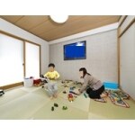 壁一面にお部屋の雰囲気やお好みに合わせてエコカラットをデザイン貼り。和室はシックに。 いつもは、お子さんの遊び場に。