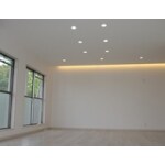 ダウンライトと間接照明を埋め込み、マンションですがリビングには床暖房も設置してあります。