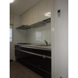 扉材の色をツートンカラーにし、吊戸をホワイト系に明るくすることにより、空間を広く見せました。換気扇のお掃除もこれからはとても楽に。