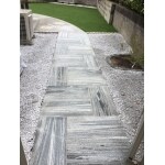 雑草が生えにくい事が手入れの楽な庭、と考え土間と石貼りの箇所以外は全て防草シートを敷設致しました。和室の窓の中心に黒ミカゲのピンコロ石で枠を作り花壇を設置しアプローチに敷石(お子様が三輪車乗り入れ出来るように連結貼)、他の箇所を考えると純和風は合わない為シンプル和風に施工しました、花壇内の植物の成長が楽しみです。人工芝は裸足で歩いても比較的チクチクしない毛足の長いタイプを使用しました。