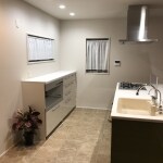 既設のシステムキッチンを壁向きから対面式に変更し移設