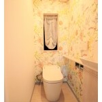509.木目調のフロアとアクセントクロスがオシャレなトイレ。