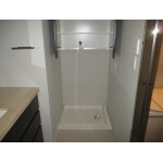 新しい洗濯機は既存製品より高さがあるため、 既設人工大理石カウンター台は撤去し、 新たに洗濯パン新設をご提案し、採用いただきました。 吊戸棚の最下段も併せて撤去し、 洗濯水栓の設置するための高さを確保しました。 勿論、カット跡は加工し、 見栄えが悪くならないようにしました。