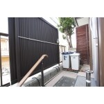 目隠しフェンスを高いものに差し替え、階段には手すりを設置しました。