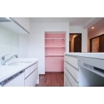 奥のバルコニーから北側の窓まで廊下とパントリー内部を風が通り抜けます。