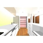 導線を廊下通路とパントリー内をウォークスルーする2経路取り南北の窓からの採光と通風をとれるように工夫しました。