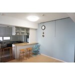 キッチンスペースは既存のカウンター・収納を撤去、家電収納・小家具にあわせてカウンター新規造作。収納力UPをご希望でしたので、既存に合わせて吊戸増設。また、システムキッチンのシンク下引出し収納脇、通常フィラー取付け部分も扉面材を加工し収納にしました。和室はお子様のアレルギー対策として清掃性の良いフローリング調のフロアタイルで隣のリビングとつながる洋室へと変更。玄関・廊下・LDKにはインテリアにもなる機能性の高いLIXILエコカラットを大胆に採用しました。お子様の危険回避も強いご希望だったため、木部造作箇所はすべて大工さんに細かい面取り加工を施してもらっています。
