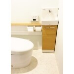 マンションの高層階だったのでハイブリットタンクレスをご提案。 手洗い付きですっきりと。 ホワイト系の内装で奥行の狭さを解消。