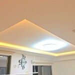 和室を解体してLDKに取り込みました。 アクセントクロスとダウンライトがおしゃれ。