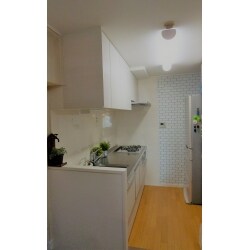キッチンを取り換えて、サブウェイタイル風の壁紙も貼りたい。