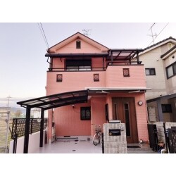 キレイな大人ピンクで明るくなりました。 屋根も遮熱塗料で塗装しました。