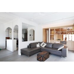 キッチンへ繋がる壁にガラスをはめ込み和室の壁を取り払って開放感のあるリビングになりました。