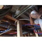 間取り変更して、2階に浴室と洗面所を設置しました。幅も1350mmあり収納たっぷりで洗濯機置き場にはガス乾燥機用のガスコンセントと排気用のダクトを設置しました。