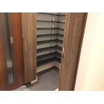 既存の玄関よりもスペースを広くする為に、間取りの変更を行いました。それに伴い耐震補強も行いクローク内の明り取りで小窓も付け、クローク内も土足でも上履きでもどちらでも行けるように広いスペースを確保しました。靴や、衣服、ゴルフバック等々 収納タップリできます。