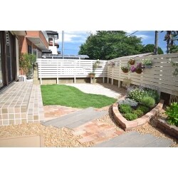 宅内のリフォームも弊社で工事をしていただき、次はお庭を綺麗にしたいとご相談をお受けしました。 芝生と植栽のお手入れが大変なので、ローメンテナンスガーデンにしたい。 また、建物内外のイメージに合わせた南欧風ガーデンをご希望でした。