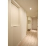 廊下の空間は足元だけが照らされるように集光タイプのダウンライトを取付け、味気ない廊下のイメージに明暗のメリハリを付けて演出しました。 解体後に判明したスペースを活かし、ニッチを造作しました。天井には照射角度を変えられる集光タイプのユニバーサルダウンライトを取付け、飾る物にスポットを当てて演出します。