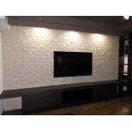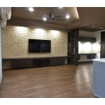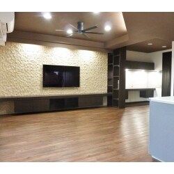 初めに間仕切り壁を撤去し、1から間取りを考えることができることをご提案しました。 リビングは壁にエコカラットが施工してあり、撤去するにはもったいないので2重壁にすることで防音効果もあり電気配線も通すことで壁付けTVが設置できるようにしました。 和室は元から撤去の予定でしたが、その後の予定が決まっていなかったんで、書斎にすることをご提案しました。 奥様のお仕事の関係とお子様が小学生のことから、共用の書斎を設けることでお子様の勉強と奥様のお仕事ができるスペースを造りました。 書斎には壁付けカウンターテーブルを設置、カウンター上下に多くの収納を設置しました。