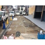 建物全面駐車スペース。汚れ、クラック、欠損がひどい状態。
