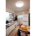(旧京都建物株式会社(京都建物工務店リフォーム)での事例です。)キッチンスペースはクロスを貼り替え、照明も新しいものに交換させていただきました。 リビングダイニングへと繋がる床の段差を撤去し、バリアフリーにも考慮しました。 キレイで明るい空間へと生まれ変わりました。