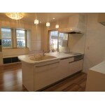 トイレの位置を移動してリビングを出来るだけ広く取り、階段下にワンちゃんゲージスペースと収納と造作。リビングの壁面一面にテレビボードと壁面収納を取り付けました。