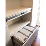 柱と柱の間にピッタリと納まり、家電とダストBOXが置けるタイプのキッチン収納をご希望でした。