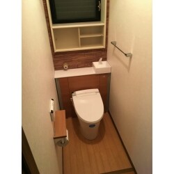 設備が古くなり、リモコンなど動作に不具合を起こしていたことをきっかけに、新しいおトイレへ交換をご希望でした。節水タイプで、掃除のしやすさなどをご要望されておられました。また、内装の模様替えもご依頼頂きました。