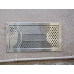周囲を調査した結果、元の換気口が大きく、イタチ等が容易に出入り出来る様な大きさで有った為、まずは、1~2週間、網を張って、様子を見て頂きました。その後、 何も起こらなくなったので、改めて、見栄えも考慮し、ステンレス製の換気口を取り付けしました。