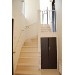 親世帯と子世帯を上下階で完全に分けています。 車2台分の組込車庫も特徴です。