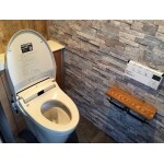 汚れの付きにくい便器にし、内装はタイル調のクロスを貼りました。紙巻き器はお客様が購入されたものを取り付けしました。とても雰囲気のあるお手洗いになりました。