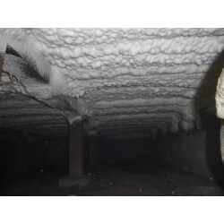 床下に駄熱材を入れる方法が一般的ですが、より気密性が高く効果がある吹き付けウレタンをご提案させて頂きました。 床下点検口から床下に入れるスペースがあるか、基礎に人通口があるか確認させて頂き、施工は2日で終了しました。