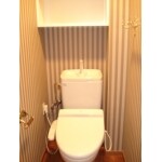 トイレスペースは落ち着いた色合いのストライプの壁紙を使用し、また違った上品な空間へと生まれ変わりました。