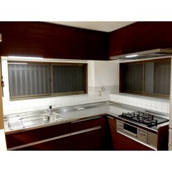 既存と同じL字型タイプのキッチンをご希望でしたので、リビングのシックな雰囲気に合うデザインのL字型タイプのものをご提案致しました。キッチンとダイニングのクロスも交換し、統一感が生まれました。きれいになって施工して良かったと、お客様より嬉しいお言葉を頂けました。